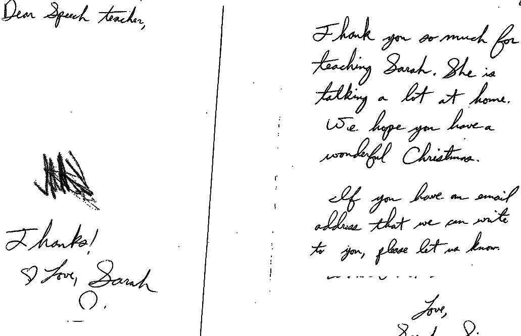 | Thank you card from clients for Speech Therapy |